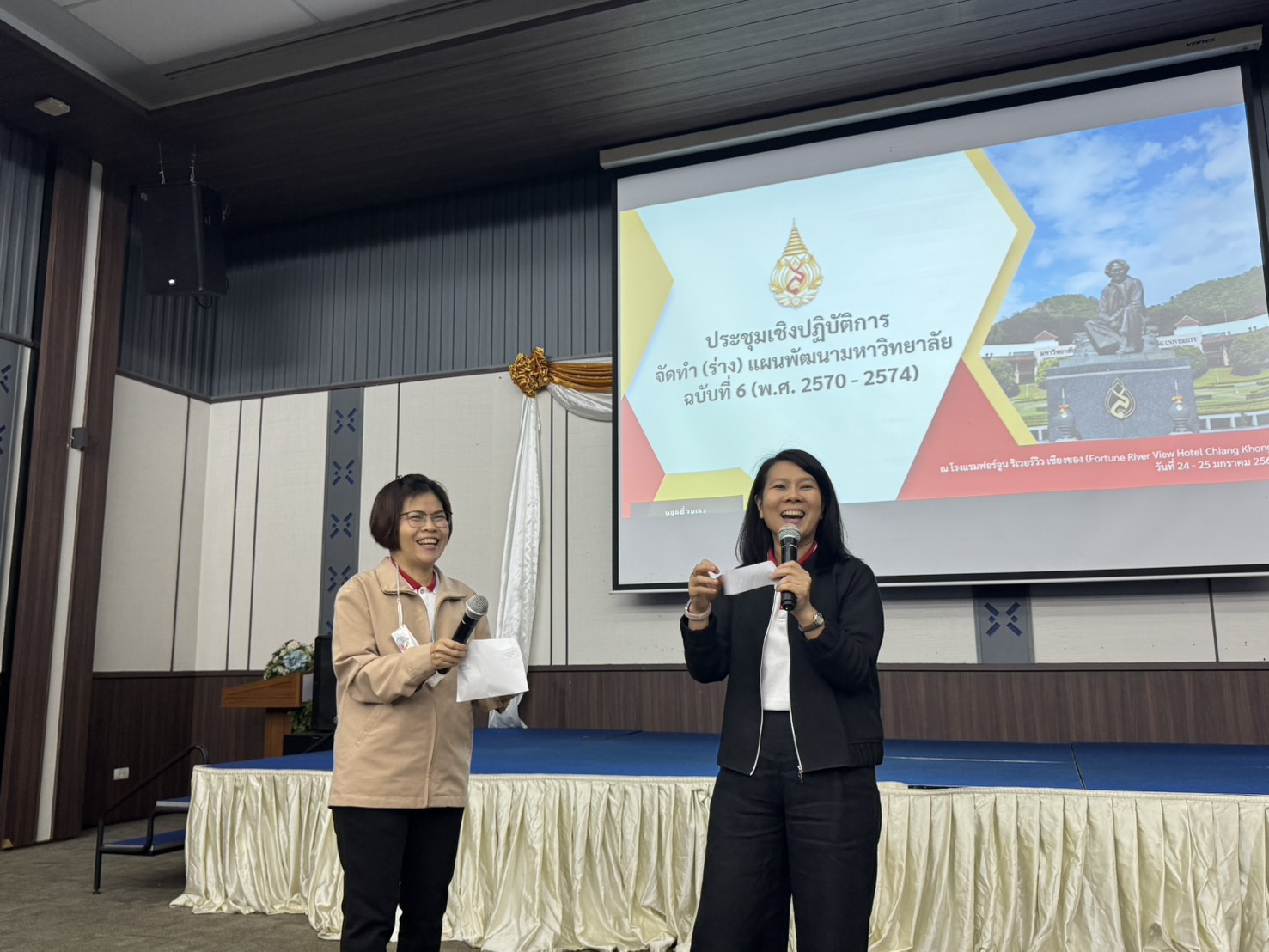 On January 24–25, 2026, at the Fortune River View Hotel Chiang Khong, Mae Fah Luang University (MFU) organized a strategic workshop to draft the 6th University Development Plan (2027–2031). The session was presided over by Asst. Prof. Dr. Machima Naradisorn, President of Mae Fah Luang University.